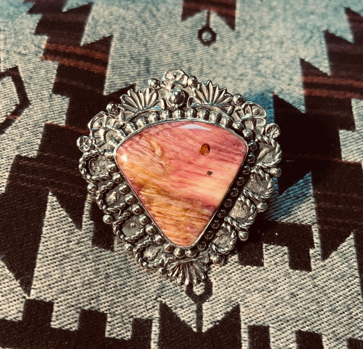 Sterling Silver and Purple spiny oyster adjustable ring.
